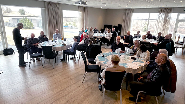 Engar breytingar urðu á stjórn frá fyrra ári, en í henni eru Sigurkarl Stefánsson, formaður, Jakob Kristjánsson, gjaldkeri og Kristín Magnúsdóttir, ritari. Á fundinn kom fjöldi góðra gesta. Fyrst kom fram Hrefna Jóhannsdóttir hjá Landi og skógi en hún fór yfir starfið fram undan. Hún sagði frá bágri stöðu fræja á lerkiblendingnum Hrym en ekki er útlit að nokkrum Hrym verði sáðánæstaári. Nýir skógræktarráðgjafar Vesturlands kynntu sig fyrir skógarbændum. Það voru Gústaf Jarl Viðarsson og Naomi Bos. Þá kom Hjörtur Bergmann Jónsson, formaður búgreinadeildar skógarbænda BÍ, í pontu og sagði frá starfi skógarbænda hjá BÍ og má í stuttu máli segja að unnið sé að mörgum góðum málum í þágu skógarbænda. Að lokum notaði Valdimar Reynisson skógfræðingur tækifærið og þakkaði skógarbændum fyrir gott samstarf yfir árin, en Valdimar hefur nýverið byrjað störf fyrir Ygg carbon. Fundurinn var vel sóttur og vel fór á með gestum fundarins.