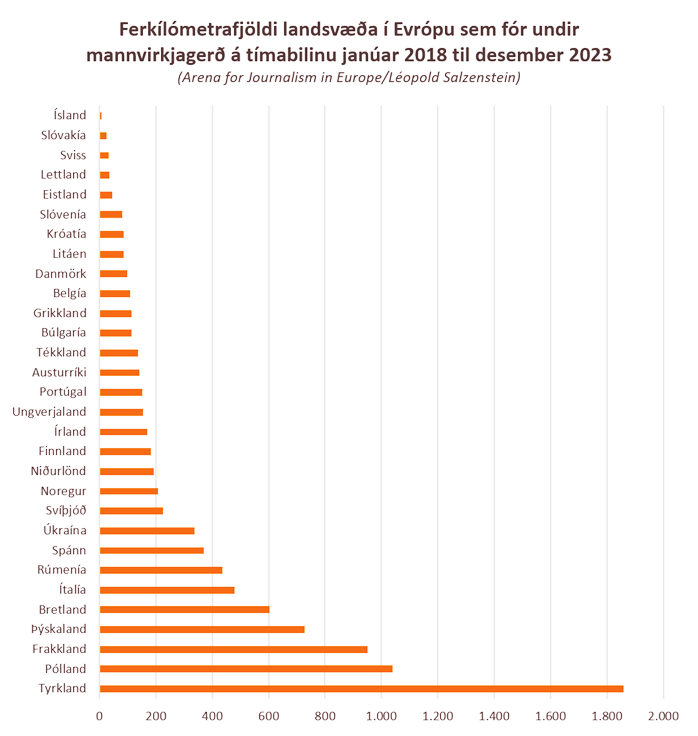 Á tímabilinu janúar 2018 til desember 2023 tapaði Evrópa um það bil 9.000 km² af náttúru og ræktarlandi. Þetta jafngildir tæplega 30 km² sem eyðileggjast í hverri viku, sem jafngildir 600 knattspyrnuvöllum á dag.