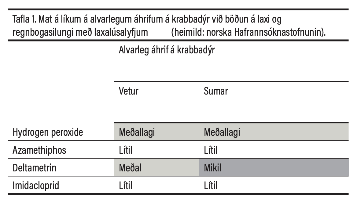 Það er oft mikið gert úr neikvæðum áhrifum notkunar laxalúsalyfja og vissulega geta áhrifin verið neikvæð í sumum tilvikum. Það sem hins vegar er gagnrýnivert er óheft notkun laxalúsalyfja án þess að það liggi fyrir áhættumat á mögulegum staðbundnum og neikvæðum áhrifum lyfjanna á lífríkið.