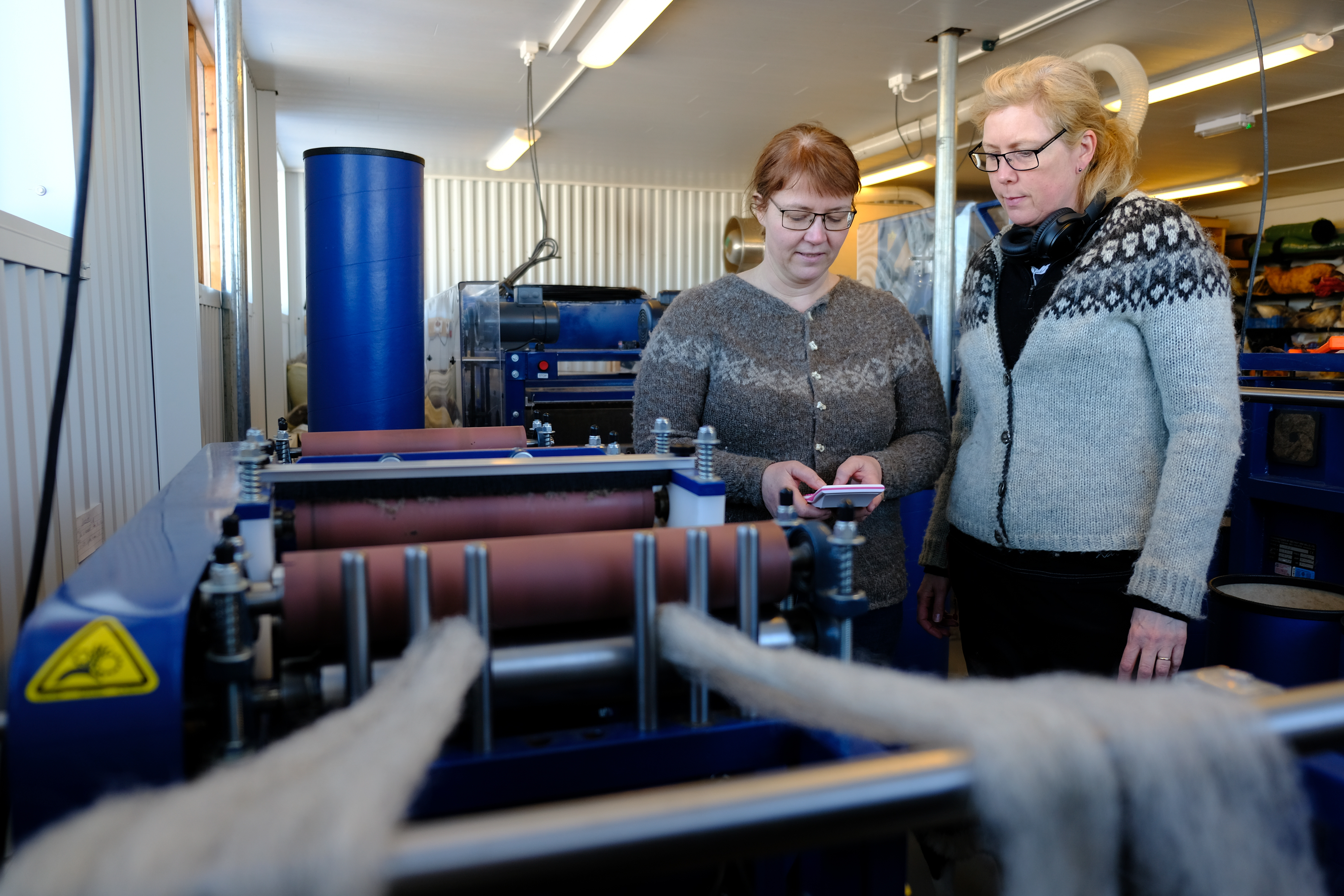 Áður en við réðumst í kaupin fórum við út með svolitla ull til að athuga hvort þetta myndi virka fyrir okkur. Síðan komu fulltrúar frá söluaðilanum í Kanada til okkar og voru með okkur í viku á meðan verið var að setja vélarnar upp og komu svo aftur síðar og voru aðra viku við kennslu – og þetta var innifalið í kaupunum.“