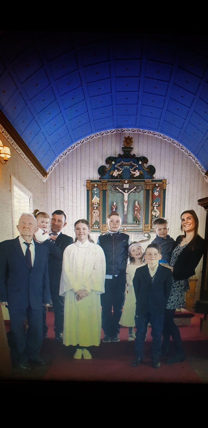 Fjölskyldustærð (og gæludýra): Við hjónin ásamt sex börnum; Svandís Aitken, 15 ára, David Örn Aitken, 14 ára, Axel Örn Aitken, 11 ára, Sóley Lindsay Aitken, 7 ára, Snæbjörn Örn Aitken, 4 ára, Stella Robin Aitken, 3 ára og faðir minn, Sigurvin Ólafsson. Svo erum við með tíkina Ariel og kettina Capucchino og Expresso.