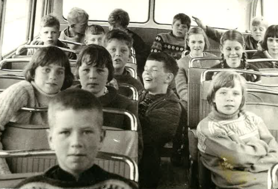 Hugsanlegt er að einhverjir þekki þessi andlit. Börn í rútu á leiðinni á búvinnunámskeið á vegum Æskulýðsráðs Reykjavíkur og Búnaðarfélags Íslands. Það var haldið í Saltvík á Kjalarnesi, þar sem höfuðstöðvar Stjörnugríss eru í dag. Líklega árið 1964.