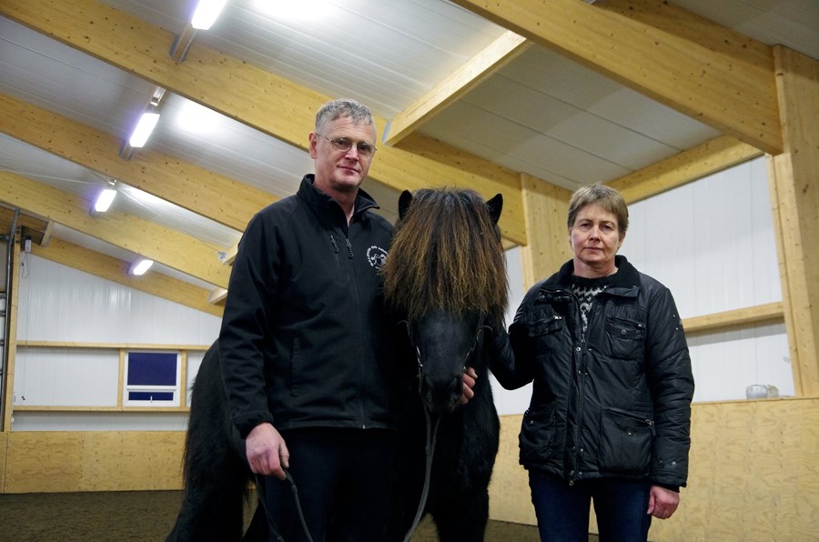 „Það var algjör bylting að fá skemmuna. Þá er maður ekkert háður veðrum með þjálfun. Þetta verður allt mun þægilegra, eins og í þeirri endalausu rigningartíð sem hér var í haust. Auðvitað hefði maður getað farið í galla og skarkað hér úti, en skemman gerir manni kleift að vinna þetta jafnt og þétt alla daga ársins. Áður komu oft heilu vikurnar sem ekkert var hægt að gera vegna veðurs og þá þurfti að nota helgarnar þegar rofaði til.“