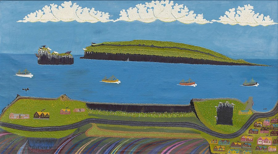 Verk eins helsta naívista þjóðarinnar eru um þessar mundir til sýnis á gamla bókasafninu á Drangsnesi við Steingrímsfjörð.
