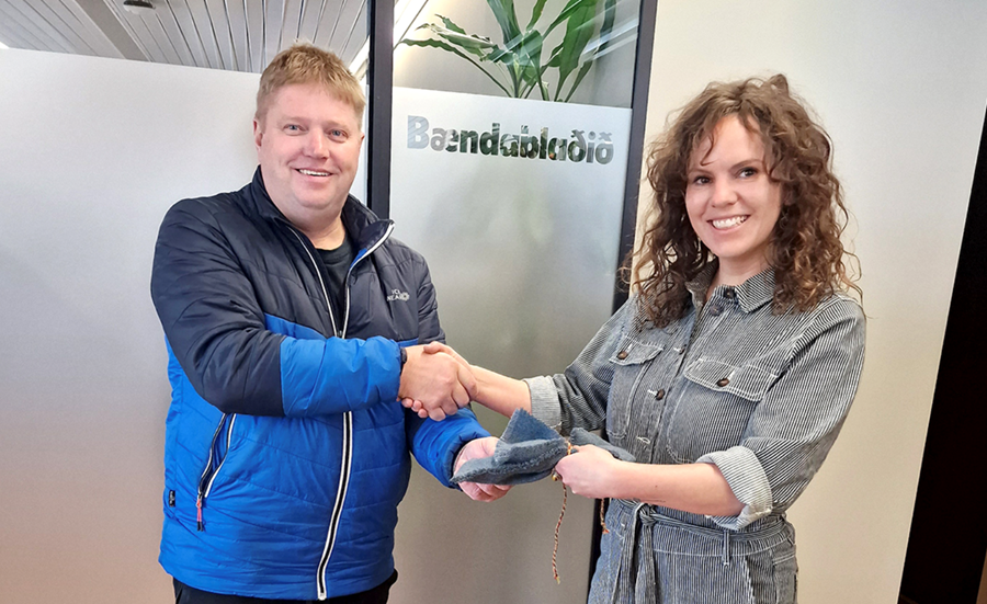 Birgir Heiðmann Arason, bóndi á Gullbrekku og formaður BSE, færði starfsmönnum blaðsins handverk Beate Stormo, eldsmiðs og bónda.