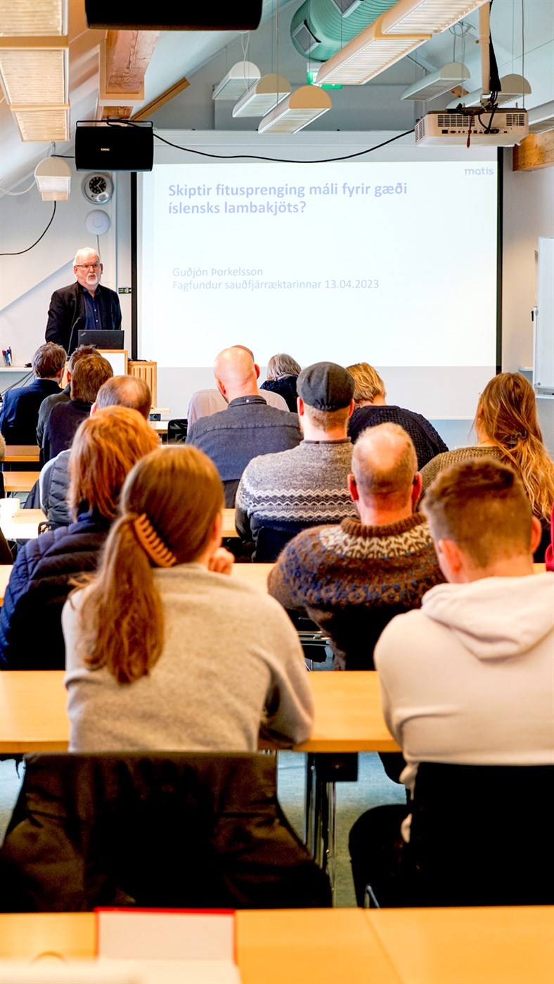 Í lok erindisins sagði Guðjón að eins og staðan væri í dag skipti innanvöðvafita í íslensku lambakjöti sennilega ekki máli með tilliti til gæða en gæti gert það