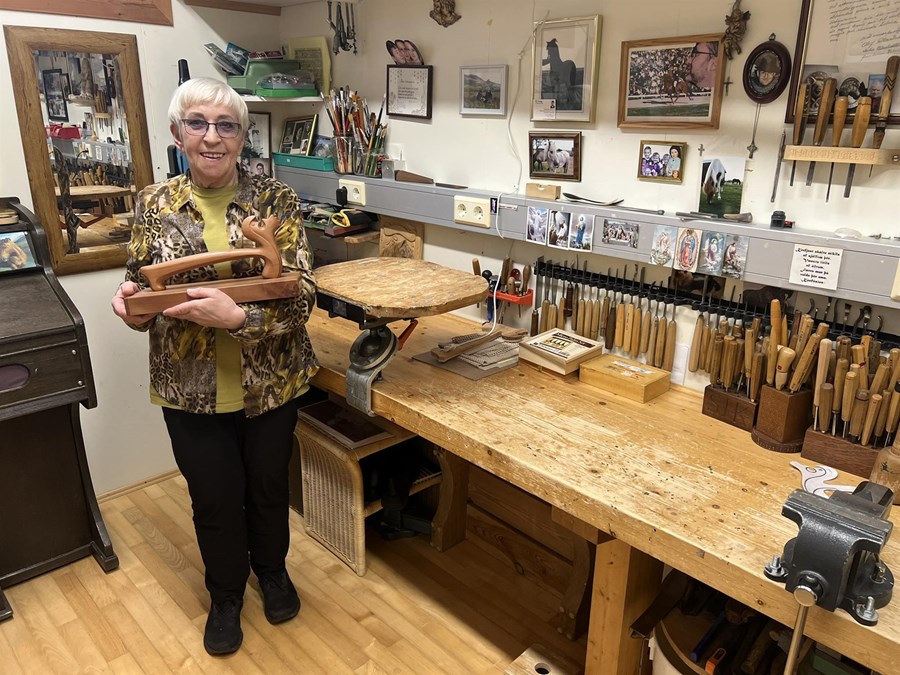 Nú er ég að vinna skemmtilegt verk, sem hvílir leyndardómur yfir, ég má alls ekki segja hvað það er,“ segir Sigga hlæjandi og bætir við: „Ég sker út á meðan ég get, þetta er svo skemmtilegt og gefur mér mikið,“ segir Sigga, sem verður 79 ára þann 30. maí.