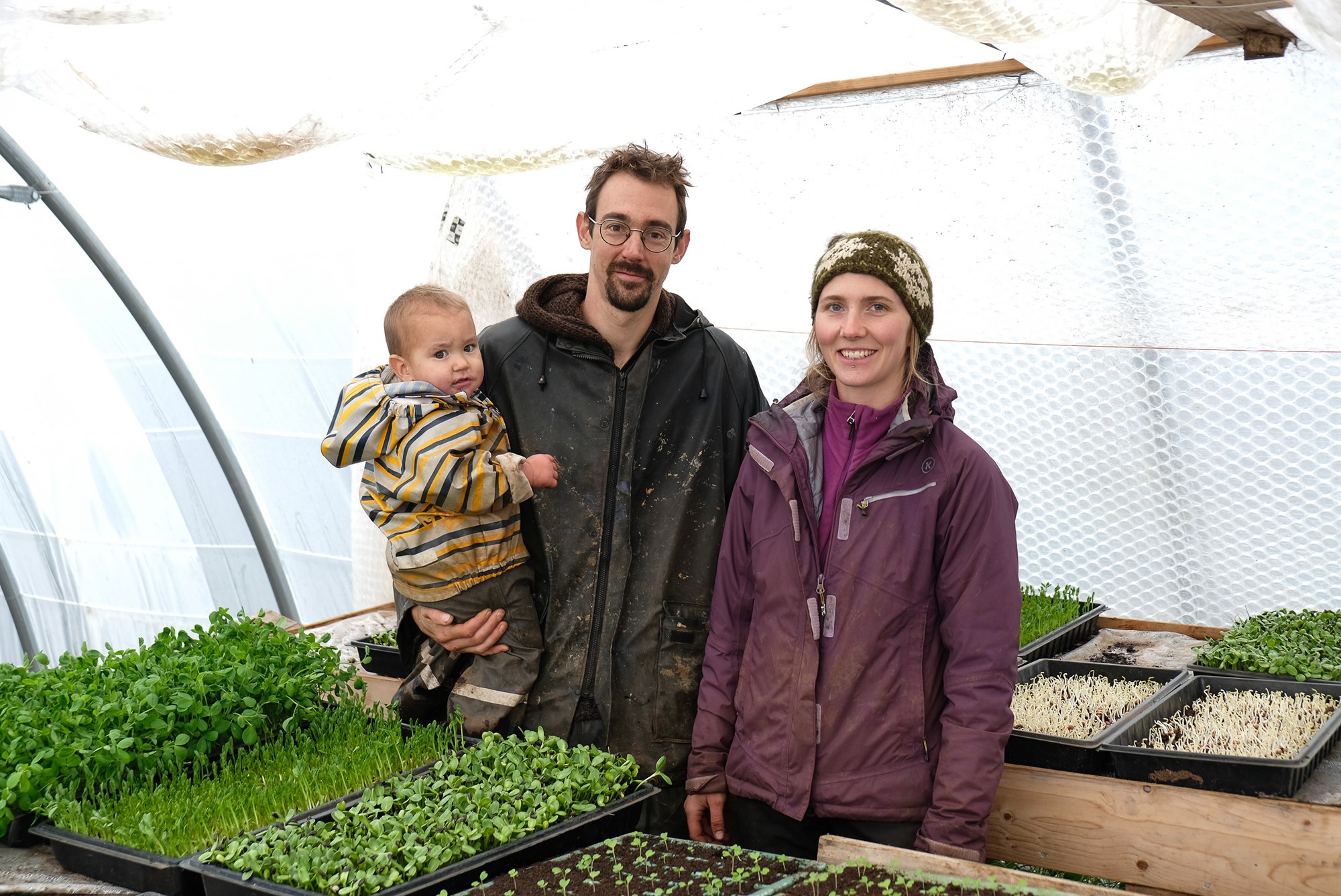 Á bænum Narfaseli, undir Hafnarfjalli í Borgarfirði, hafa svissnesku hjónin Laurent og Lola Balmer sest að og stunda þar grænmetisræktun úti og inni í gróðurhúsi. Þau fluttust til Íslands snemma á síðasta ári og hafa reist sér íbúðarhúsnæði, geymslu og lítið kornsíló á landinu – auk veglegs 450 fermetra gróðurhúss.