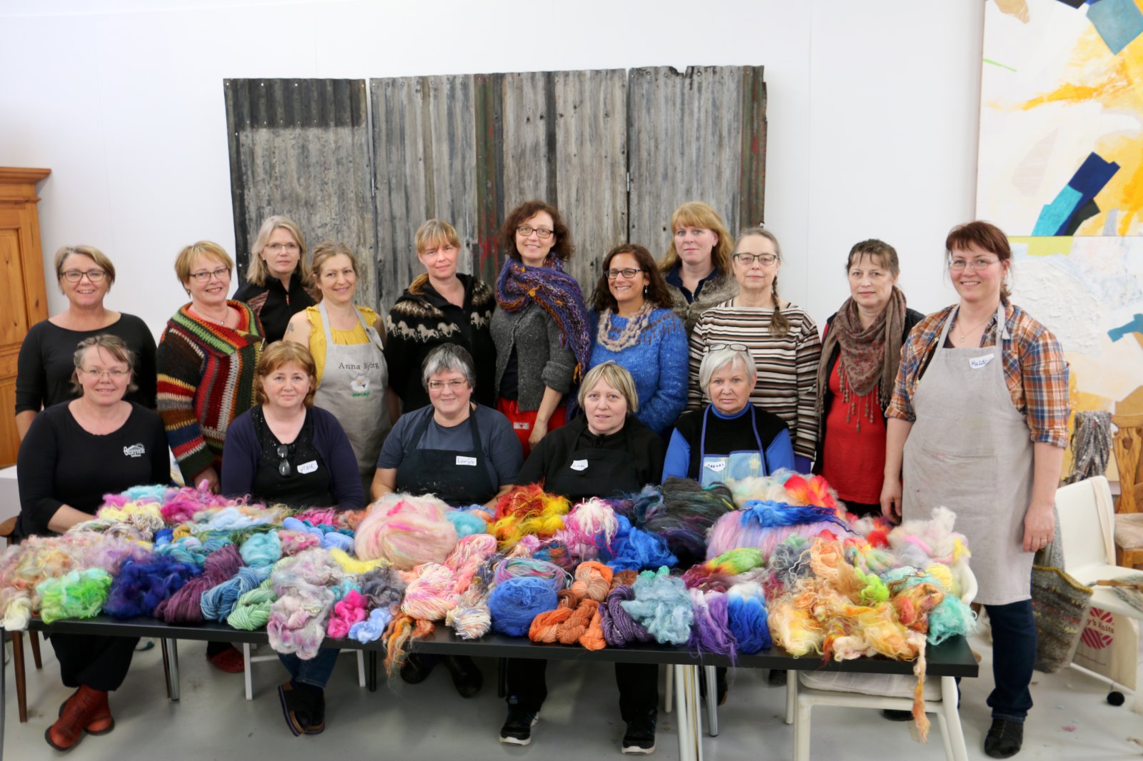 Helgina 2. og 3. apríl mættu sextán hressar konur á bæinn Skinnhúfu í Holta- og Landsveit á námskeið hjá Lauru Senator en hún kom til landsins til að kenna konunum að sýrulita íslenska ull með örbylgjuofnum í þeim tilgangi að bæta við náttúruliti ullarinnar.