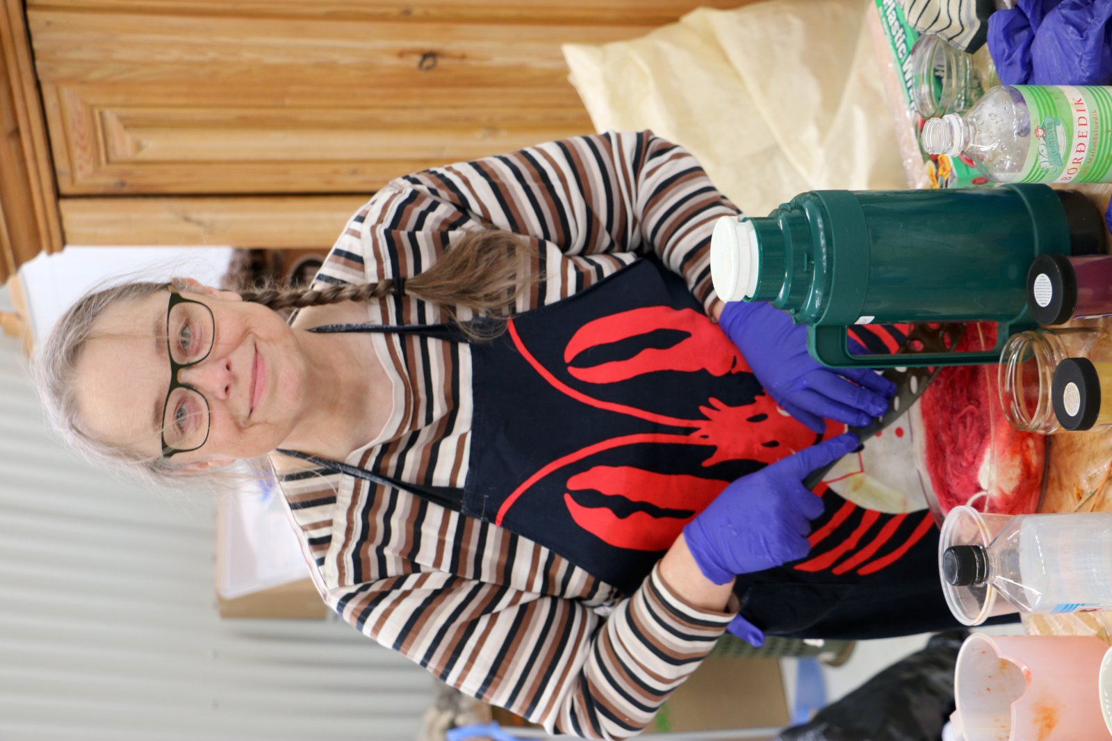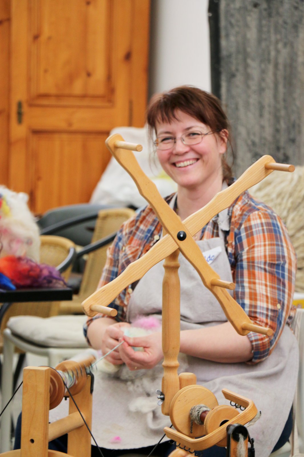 Laura starfar sem barnalæknir en spinnur og litar ull og selur á netinu. „Það er mikil endurvakning í ullartengdu handverki í Bandaríkjunum og þar er verið þróa nýjar aðferðir og fara langt út fyrir rammann sé horft á hefðbundna rammann. Ég vil læra sem mest, þetta er eins og að safna verkfærum, svo ég geti betur stundað listina mína.“ „Ég er listamaður í ullartímabili,“ segir Maja Siska í Skinnhúfu sem fékk Laura til landsins. Hún segir að gamla hefðbundna handverkið með íslensku ullina sé fínt og nauðsynlegt en það sé hægt að gera svo miklu meira í dag en fyrir 100 árum síðar. „Ég er heppin að hér er góður og áhugasamur hópur af spunakonum sem vilja líka læra nýtt og prufa sig áfram og standa saman með mér í þessu. Við erum spunahópur og heitum „Rokkað á Brúarlundi“ og hittumst tvisvar sinnum í mánuði allan veturinn á Brúarlundi til að vinna með ullina. Við tökum okkur reyndar frí í nokkra mánuði núna þegar sauðburður og sumarið er fram undan en byrjum aftur að hittast í haust,“ bætir Maja við.