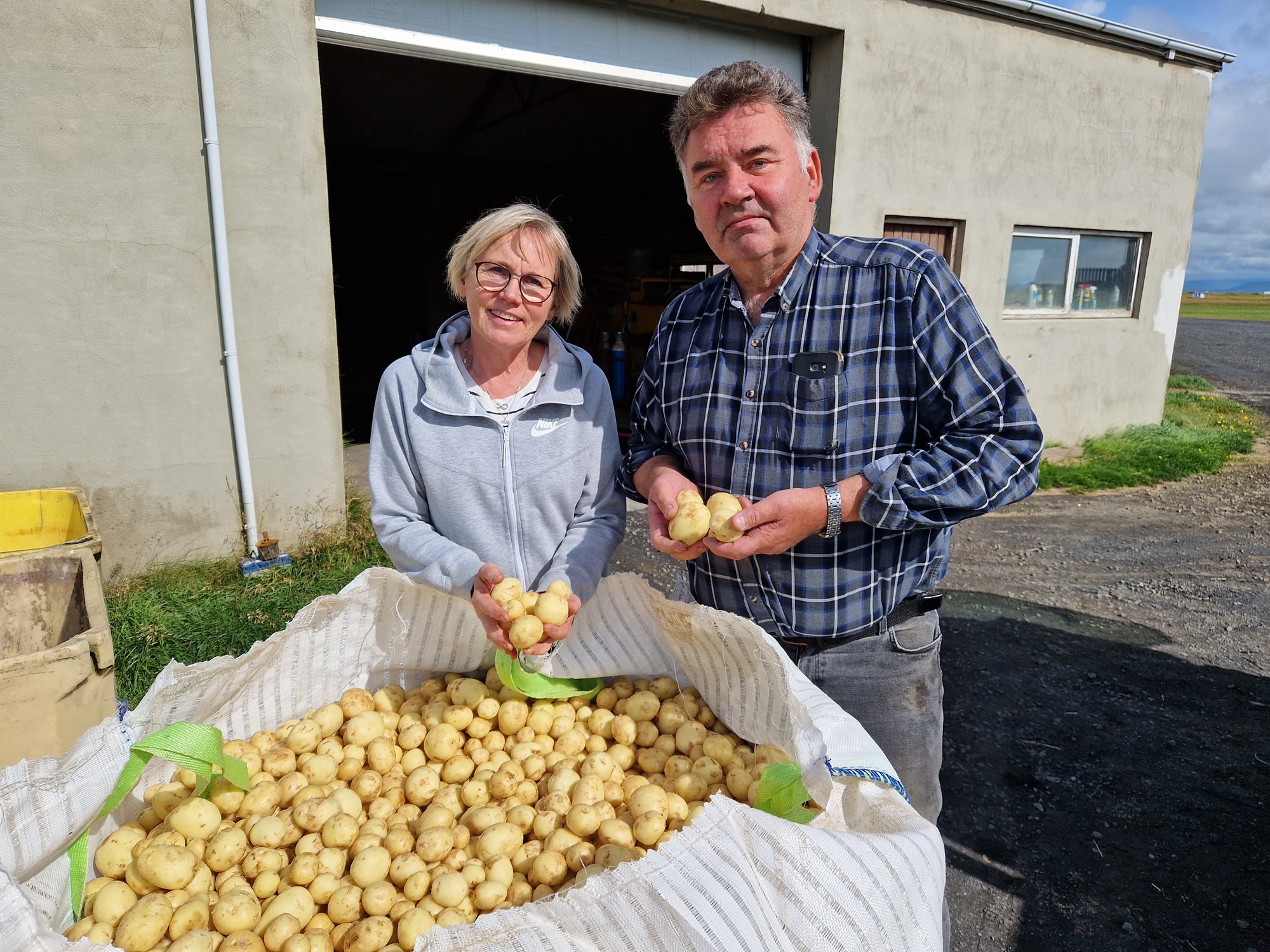 Sigurbjartur Pálsson og Jóhanna Lilja Þrúðmarsdóttir voru nýbúin að taka upp kartöflur þegar Bændablaðið bar að garði, en þessar fara beint í sölu eftir pökkun.