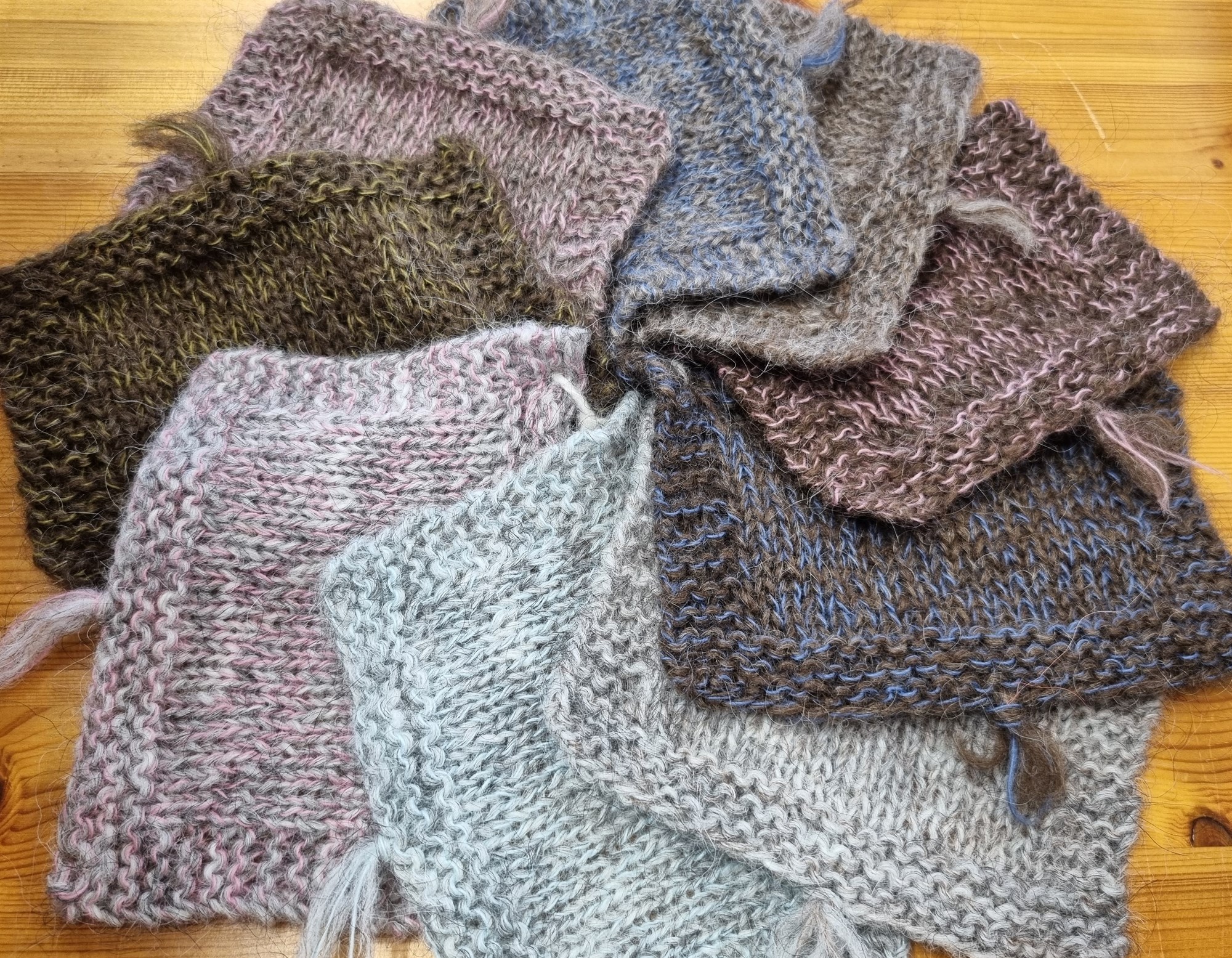 Hægt er að blanda saman hvaða litum sem er til að fá þau litbrigði sem hverjum og einum finnst fallegt. Í aðallit getur verið t.d. grár lopi og hvítt LoveStory, hvítur lopi og ljósgrátt LoveStory, ljósmórauður lopi og dókkmórautt LoveStory, dókkgrár lopi og ljósgrátt LoveStory. Mynsturlitir valdir í litbrigðum sem passa saman, eða annar þráðurinn aðeins dekkri eða ljósari til að fá áferðina á meiri hreyfingu. Möguleikarnir eru endalausir og eina hindrunin er manns eigið hugmyndaflug.