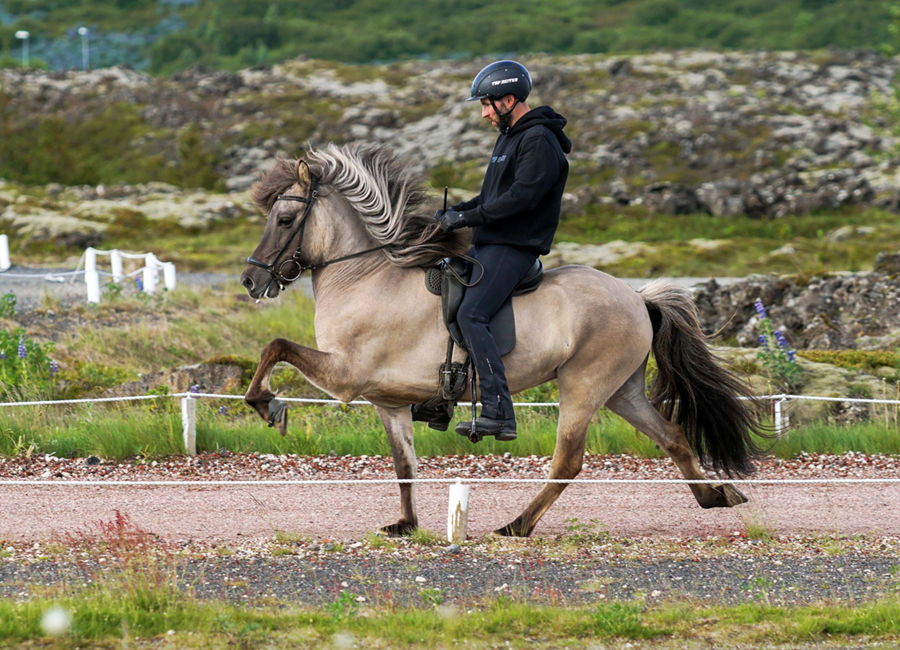 Sólfaxi frá Herríðarhóli hlaut 10 fyrir hægt tölt og tölt, knapi er Árni Björn Pálsson
