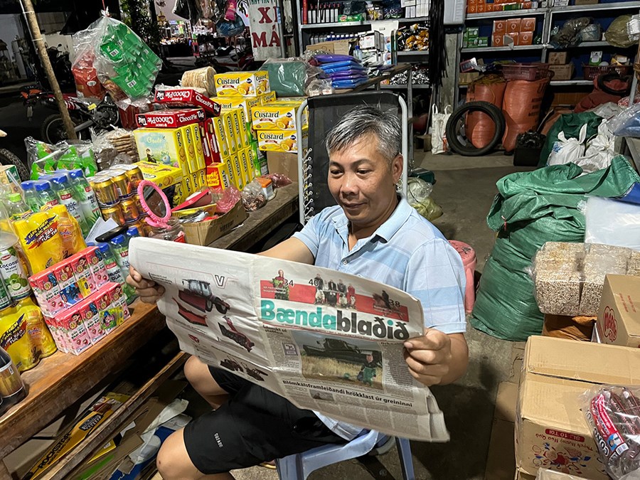 Hjörleifur Jóhannesson tók þessa skemmtilegu mynd af búðareiganda í Tam Duong í Norðvestur-Víetnam á dögunum.