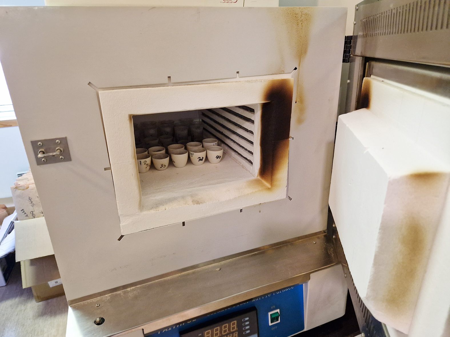 Malað heysýni er sett í litlar keramikdeiglur. Þær fara í ofn í minnst fjóra klukkutíma við 550 °C sem brennir burt allt lífrænt efni. Það sem eftir verður í deiglunni er aska. Sýnin eru látin kólna í sérstökum þurrköskum sem koma í veg fyrir aðgang raka og vigtuð að því loknu.