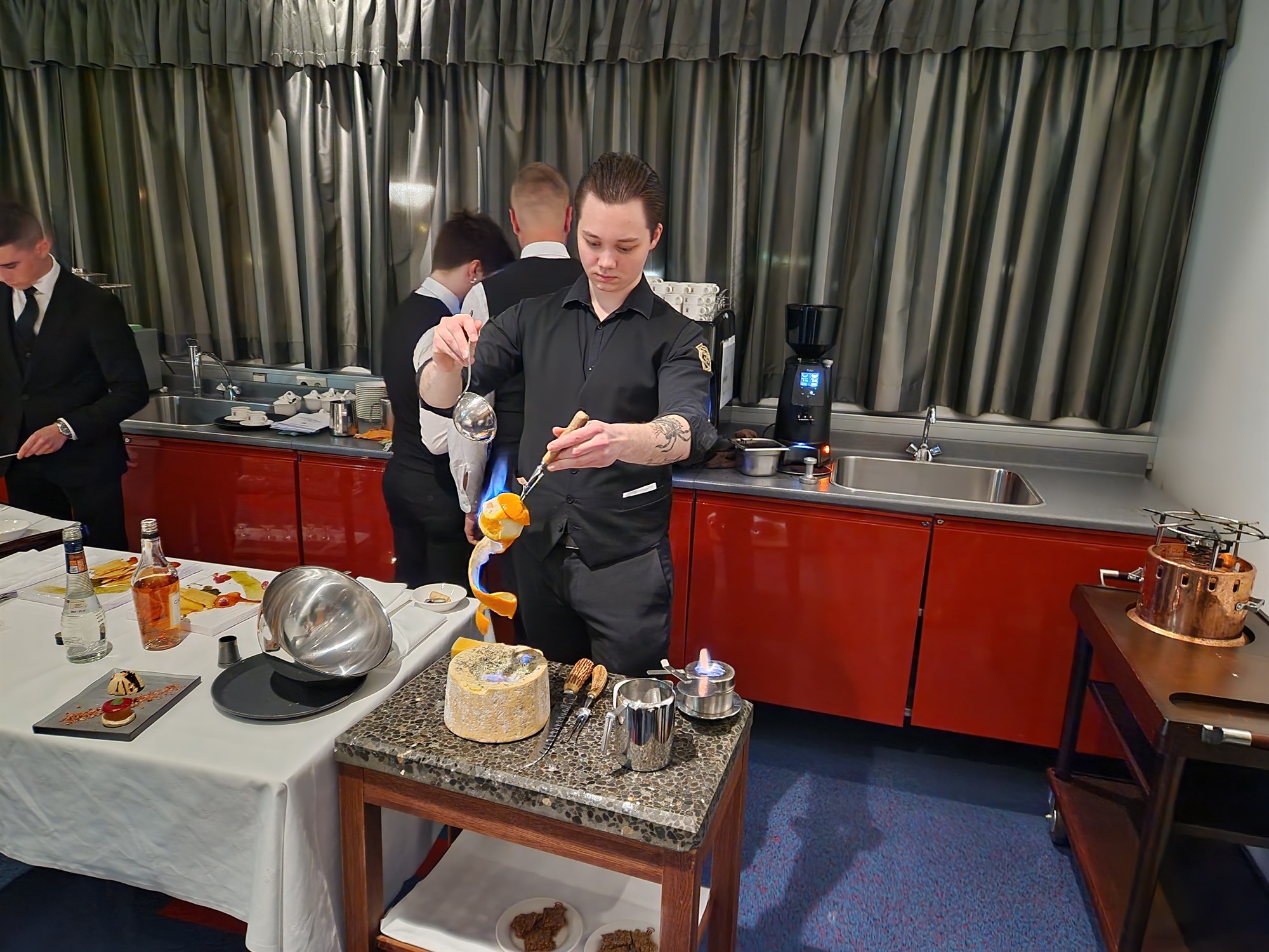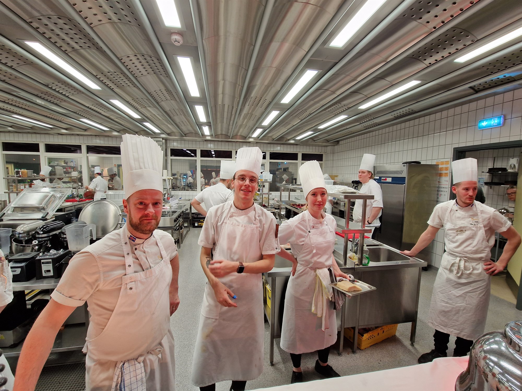 Þessi kjötskrokkur var tekinn í aðstöðu Hótel- og matvælaskólans í MK þar sem lærisveinarnir fullverkuðu kjötið. Lokapunktur verkefnisins var verkleg æfing í framreiðslu og matreiðslu þar sem boðið var í fjölréttaðan kvöldverð.