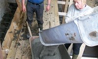 Gísli og Jónína samheldin við steypuvinnu í flatgryfjunni. Mynd úr einkasafni