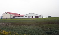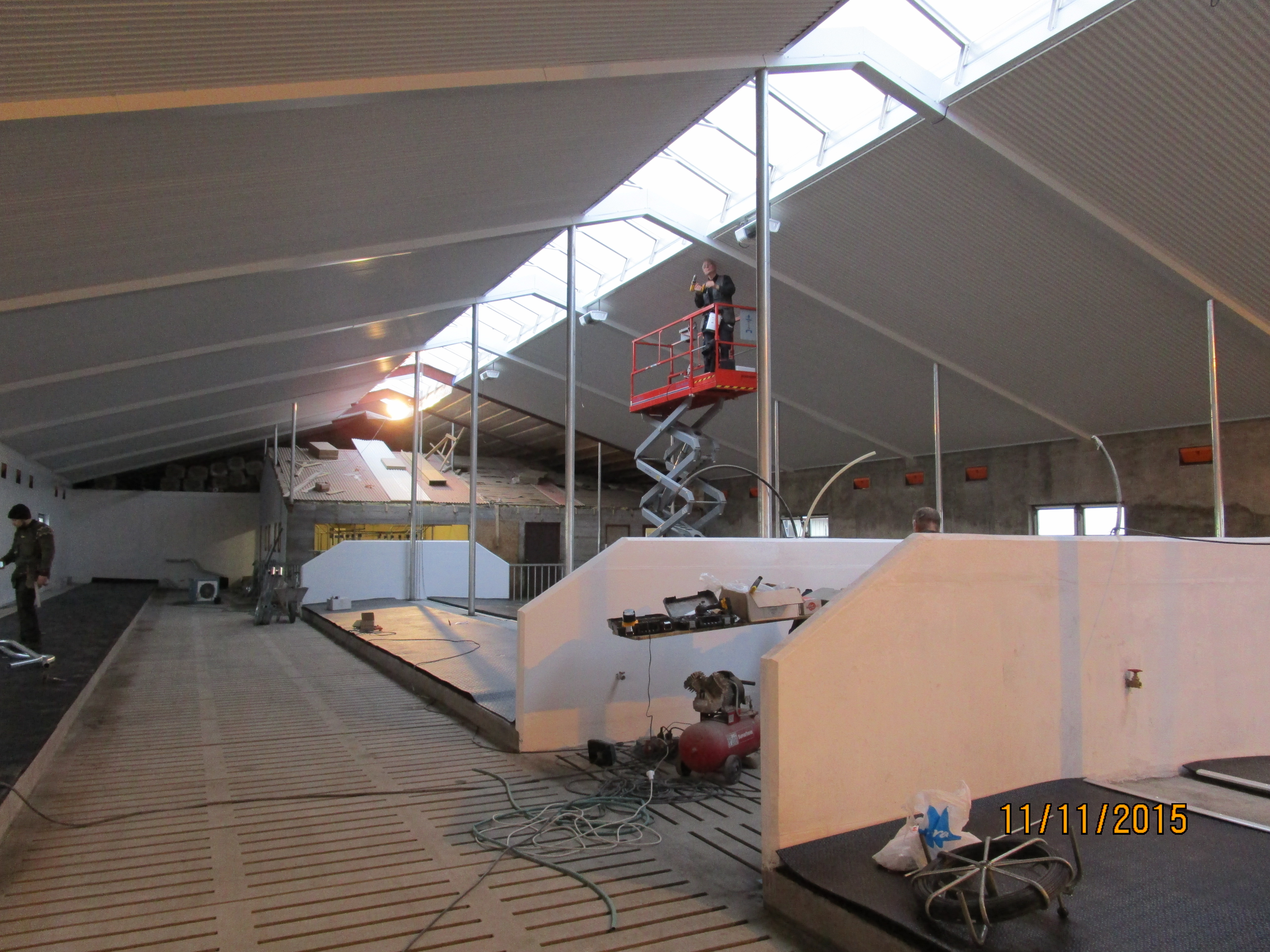 Fjósið var byggt með miklu áhlaupi árið 2015. Nýja byggingin reist yfir hluta af gamla fjósinu. Byggingin er mjög björt og loftræstingin góð. Gísli lét bæta við gluggum til að svala forvitninni um hver sé á ferðinni. Mynd úr einkasafni