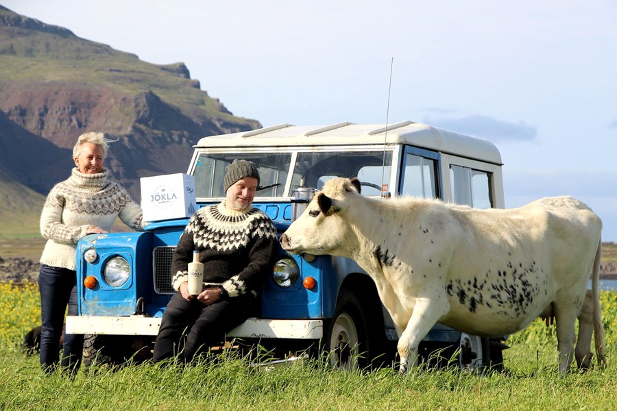 „Fyrsta árið var algjör sprengja og var hann uppseldur á smátíma. Einnig hafa bændur sagt vöruna skemmtilega viðbót í mjólkurframleiðsluna og hafa gaman af að bjóða upp á Jöklu með kaffinu.“ Hann segir að hótel- og veitingageirinn sé að taka við sér, Jökla er því á boðstólum víða um land. Bæði framleiðsla og sala hefur því aukist jafnt og þétt. Framleiðslan hefur fengið styrk frá Matvælasjóði og var sá stuðningur nýttur í gerð heimasíðu og uppskriftarbæklings auk markaðstengdra athafna á borð við landbúnaðarsýninguna í Laugardal árið 2022. Pétur segir að slíkt kynningarstarf skili sér beint í aukinni sölu. Á döfinni er ný bragðtegund Jöklu. „Nokkrar fyrirspurnir hafa komið beint til okkar erlendis frá og einnig í gegnum sendiráð Íslands um sölu á vörunni erlendis og ég vonast til að Jöklu verði að finna í hillum verslana á erlendri grundu innan skamms. Pétur hefur verið hluti af Samtökum smáframleiðenda frá stofnun. „Litlir framleiðendur verða stórir í slíkum félagsskap því saman myndum við stóra einingu sem er nauðsynlegt fyrir okkur. Við fáum góða afslætti innan framleiðslunnar og við dreifingu, einnig fræðslu og svo eru haldnir viðburðir þar sem við fáum tækifæri til að koma vörunum okkar á framfæri.“
