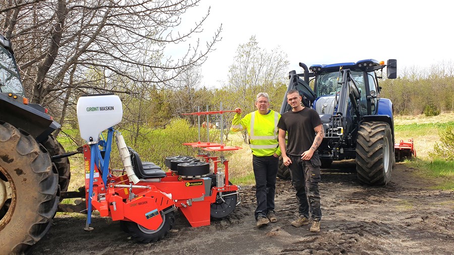 Ný útplöntunarvél er komin á Böðmóðsstaði, ítölsk að uppruna og um fjögurra milljóna króna fjárfesting, sem Auðunn vonast til að verði mikil hagræðing af. „Við höfum verið að fá inn nýjar vélar, þetta var allt orðið dálítið gamalt hjá okkur. Vélin verður formlega tekin í notkun á næstu dögum. Klakinn er nú bara nýlega farinn úr jörðu hér þannig að það hefur ekki verið mögulegt að planta fyrr út, en við verðum að þessu næstu tvær vikurnar.