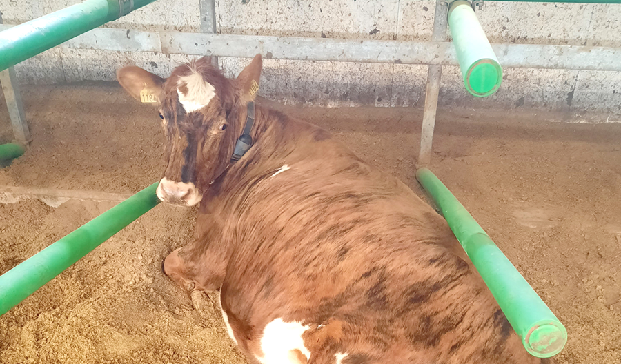 Í mykjubásunum haldast kýrnar hreinar og undirlagið er mjúkt. Áferðin minnir á gróft hveiti.