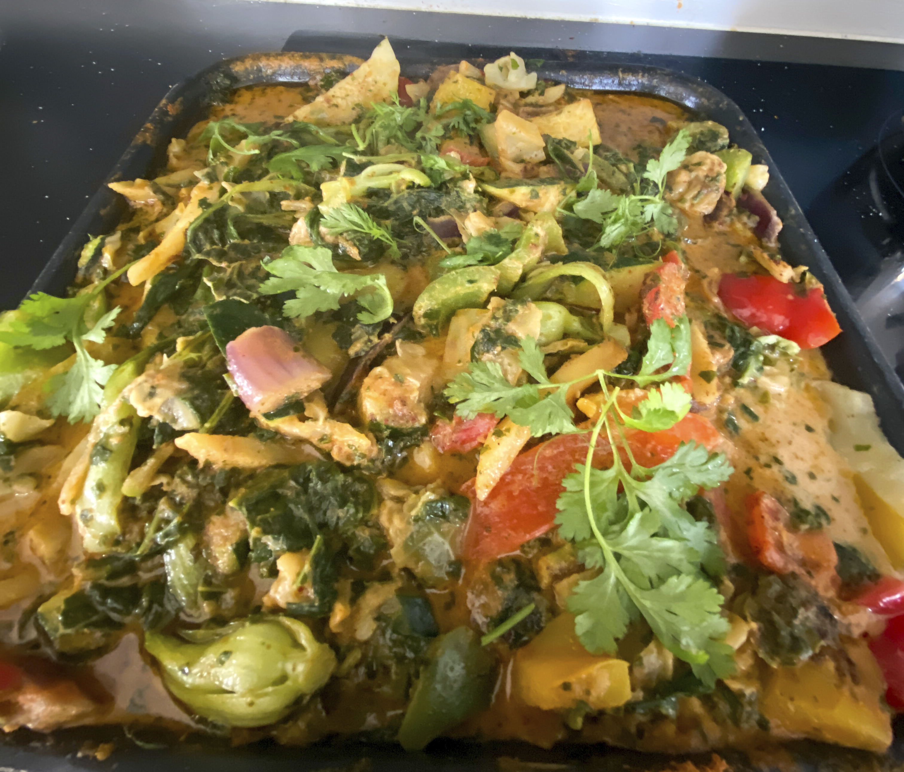 Setjið kóríanderinn yfir. Takið af hitanum.