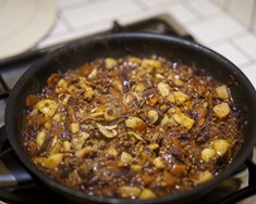 - 1 bolli fínt söxuð ferskur steinselja, mynta eða sambland af þessu tvennu.