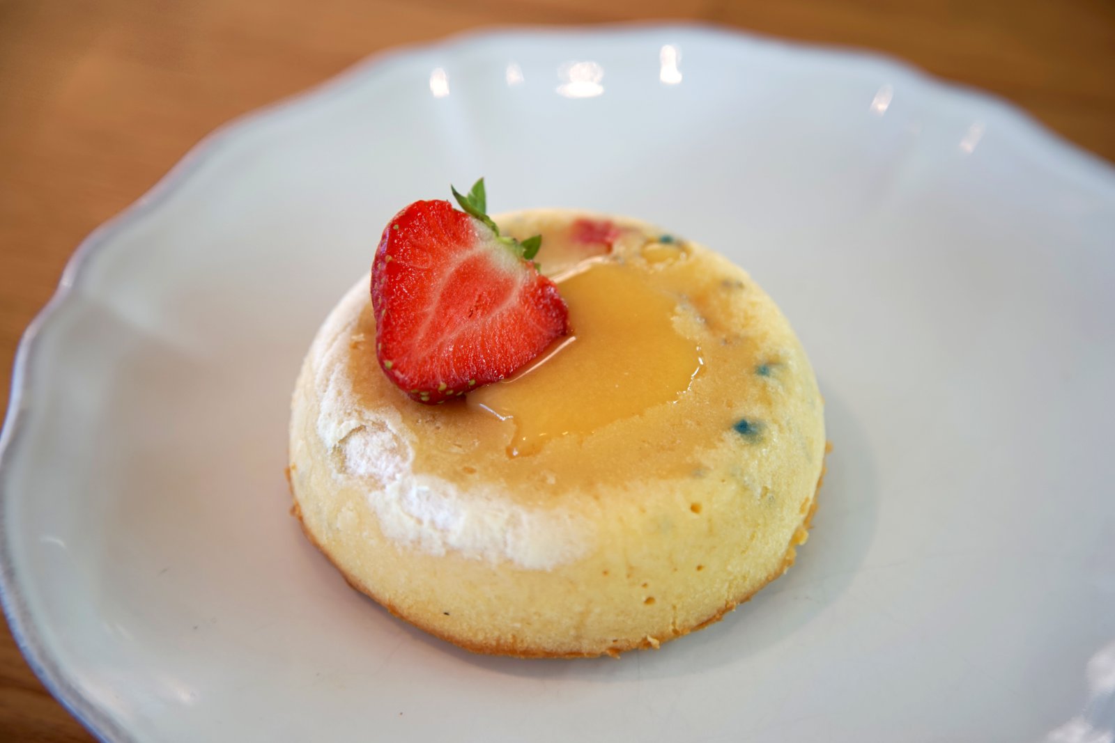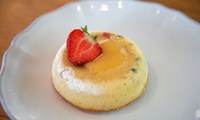 Bakið í 11–13 mínútur, eða þar til brúnirnar eru stífar viðkomu. Þegar þú hristir formið á miðjan að vera enn örlítið mjúk. Fjarlægið úr ofninum og látið kólna í tvær mínútur. Skerið með litlum hníf í kringum brún formanna og hvolfið svo á disk.