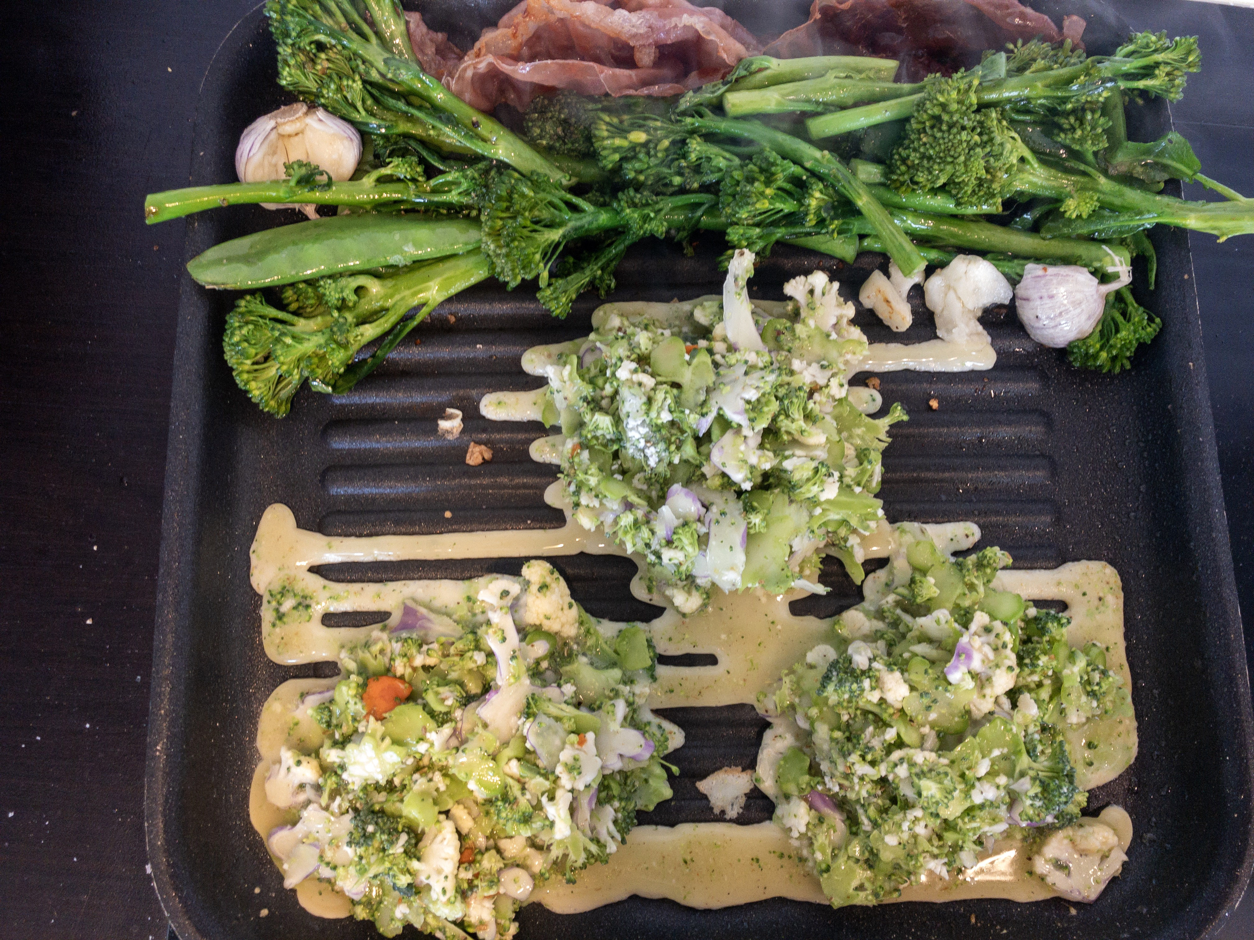 Blöndum eggjum og mjólk saman í skál, söltum og piprum. Skerum blómkál og brokkólí í fallegar sneiðar, blöndum saman við eggin í skálinni. Hellum svo blöndunni á pönnu eða í form og bakið við 200 gráður í um 30 mínútur eða þar til kakan er fullelduð. Það tekur styttri tíma að elda á pönnu og er hún þá þynnri.
