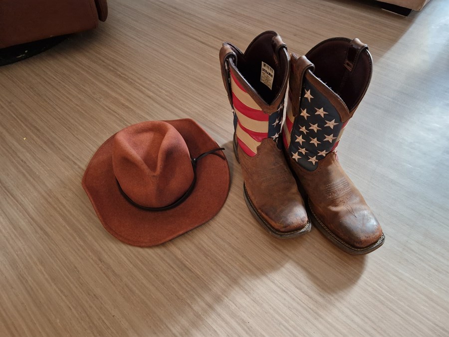 Í bænum Santa Maria vissi Hrannar af verslun – Boot Barn – þar sem hægt væri að finna kúrekastígvél í sérflokki og fannst þeim félögum afleitt að ljúka ferðinni án þess að fjárfesta í einu pari. Þeir snöruðu sér því inn og eftir nokkra stund og marga hringsnúninga varð Egill stoltur eigandi stígvéla myndskreyttum bandaríska fánanum – sem glöggir lesendur létu ekki fram hjá sér fara. Egill, sem í framhaldinu hálfsá eftir að hafa ekki keypt sér alklæðnað að hætti kúreka, vill þó ekki meina að hann sé „flamboyant“ maður að upplagi.