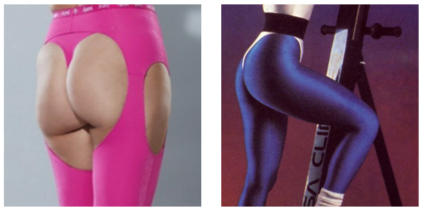 Þessi nýstárlega hönnun er nefnilega ekki nýstárlegri en svo að það var nú akkúrat drottningin Jane Fonda sem skartaði slíku í denn, kannski t.d. í kringum 1982, og þótti hvað hæstmóðins. (Og já, þá reyndar ekki með rassinn beran).