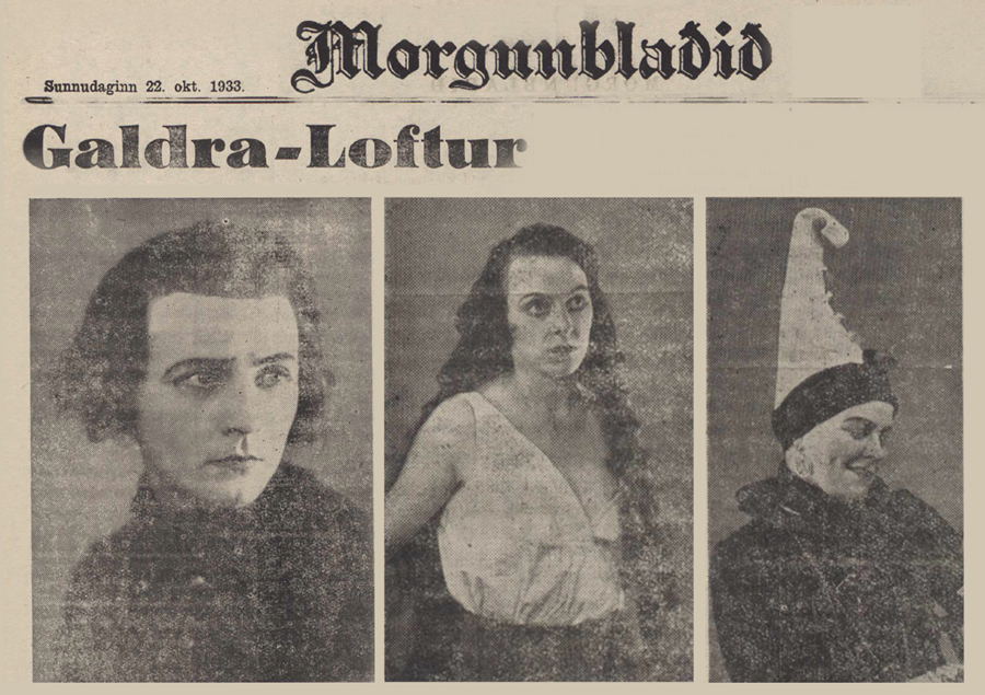En yfirleitt skorti þennan góða leikara bolmagn og sálarmagn til þess að valda þessu hlutverki, sýna kynjakraft og ofsa hins unga ofurhuga, sem vill brjóta undir sig manneskjur og myrkra völd. Soffía Guðlaugsdóttir ljek Steinunni, ekki alstaðar náttúrlega, en því betur því meir sem á reyndi. Hún gerði upp sakirnar við Loft af hatrömmu ástríðumagni. Og ef til vill hefir hún aldrei fyr náð slíkum tökum á áhorfendum, sem í lok annars þáttar, þegar Loftur hefir svikið hana, og hún gefur sig örvæntingunni, á vald, yfirbuguð, helsærð, starir niður í djúp sinnar eigin glötunar og skelfur af gráti. Önnur hlutverk voru mjög sæmilega leikin, en ekkert svo vel, að sjerstaklega sje orð á gerandi.