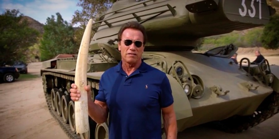 Leikarinn, sprengjusérfræðingurinn og fyrrverandi ríkisstjóri Kaliforníu, Arnold Schwarzenegger, lagði nýlega sitt af mörkum til verndunar fíla í heiminum þegar hann sprengdi fílatönn í loft upp á myndbandi.