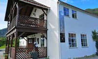 Það er ekki amalegt útsýnið út á Sognafjörðinn af veitingastaðnum í Ciderhuset.