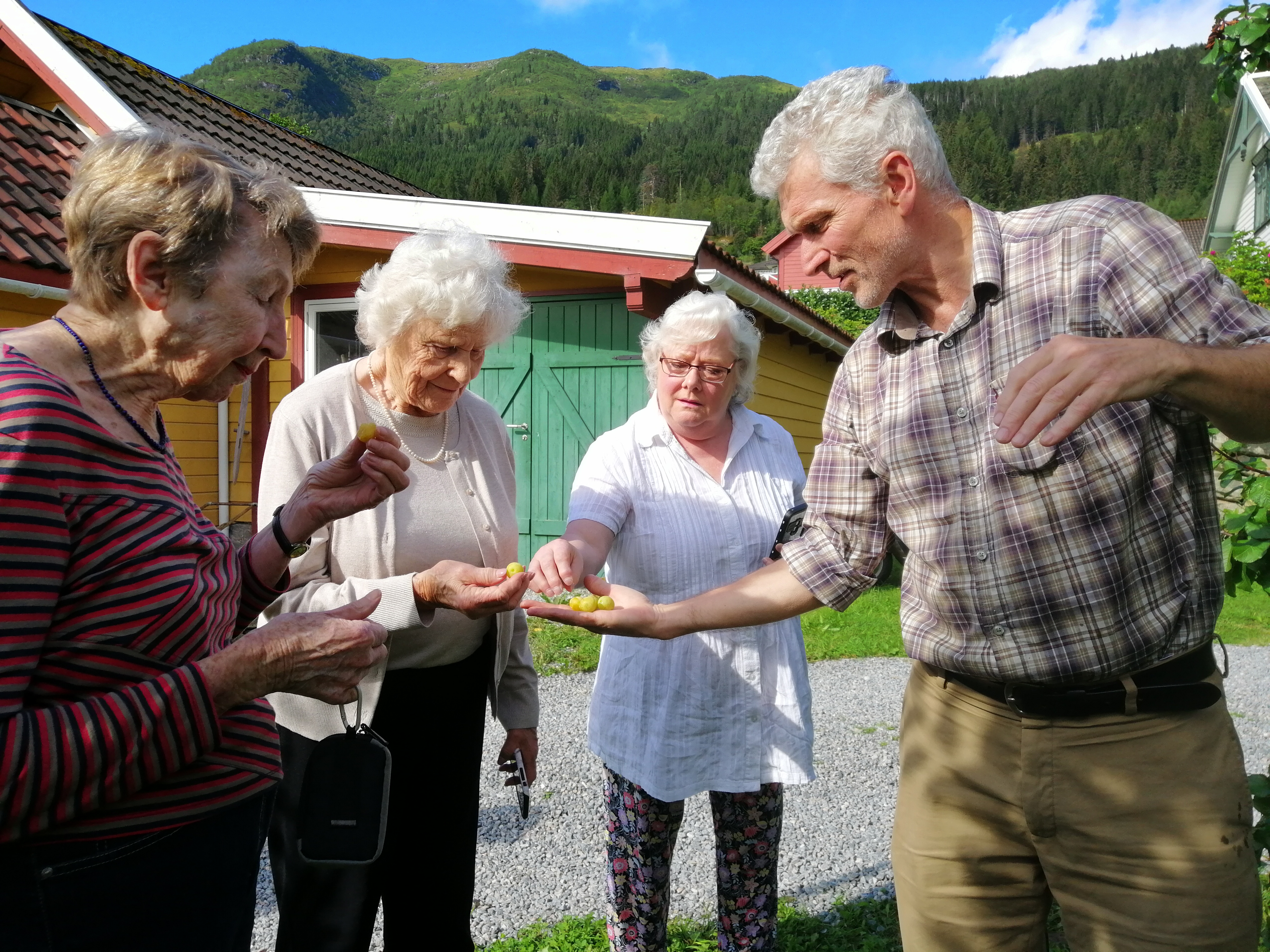 Åge er á heimaslóðum en amma hans og afi áttu sveitabæinn og plöntuðu fyrstu eplatrjánum árið 1922. Þau hjónin fluttu til Balestrand árið 1989 og tóku við sveitabænum.