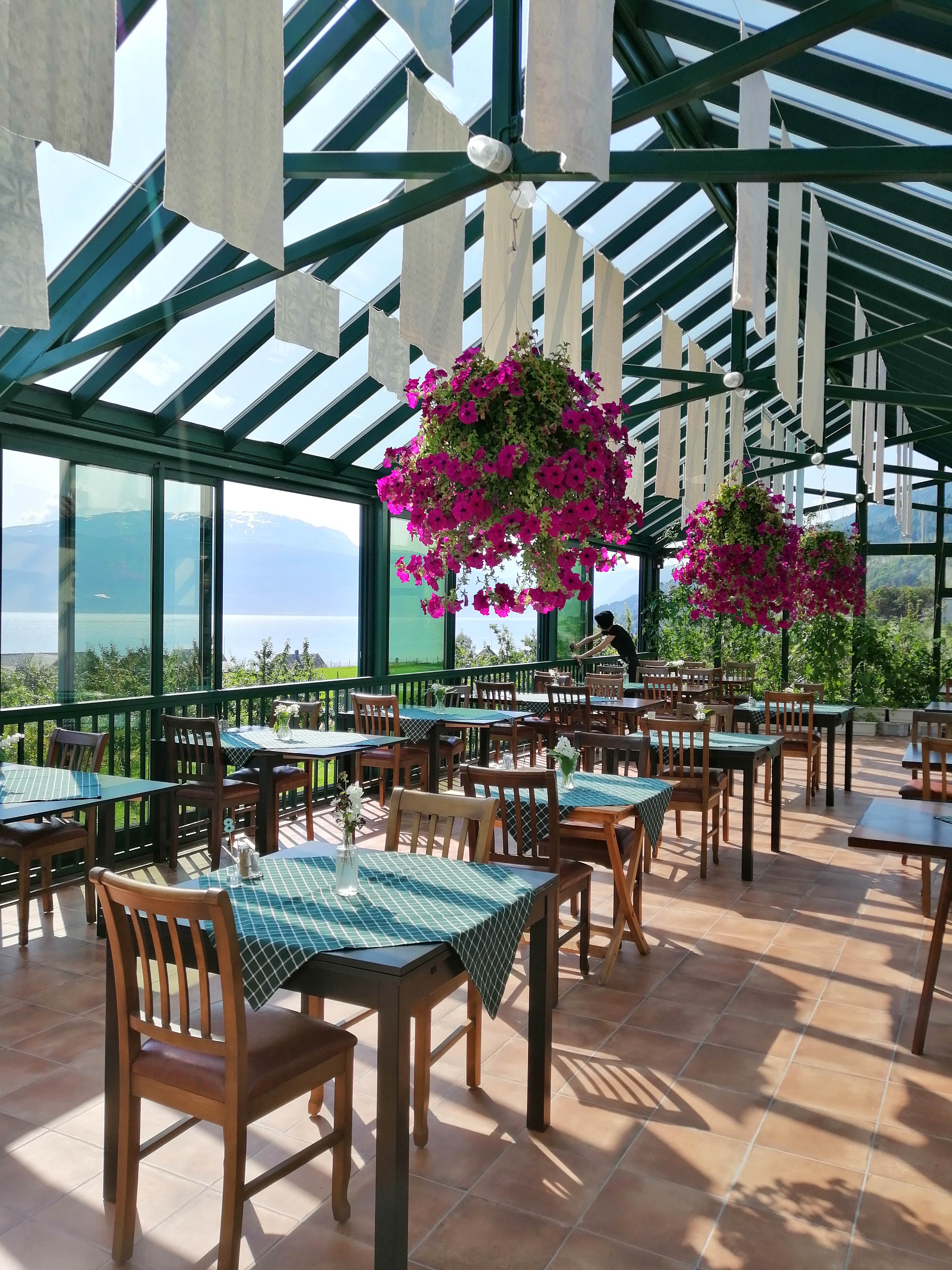 „Veitingastaðurinn er opinn daglega allt sumarið þar sem við bjóðum upp á kvöldverð frá miðjum júní og fram í miðjan ágúst. Fyrir og eftir sumartímann framreiðum við hádegisverð hér. Hér í Ciderhuset erum við með síderveitingastað þar sem við bjóðum upp á 14 mismunandi tegundir af síder, eitthvað fyrir alla og alltaf eitthvað sem passar við ólíka rétti. Tengdadóttir okkar er frá Tyrklandi og hún hefur þróað eldhúsið hér sem er innblásið af matseld Miðjarðarhafsins og blandar því saman við hefðbundna norska rétti eins og reyktan lax og súrsíld. Við erum afar þakklát og ánægð með það að veitingastaðurinn hefur fengið góða dóma, til dæmis á Tripadvisor og á samfélagsmiðlunum, og það hjálpar allt til við reksturinn, sem gerir okkur kleift að vera með 10 starfsmenn yfir sumartímann.“