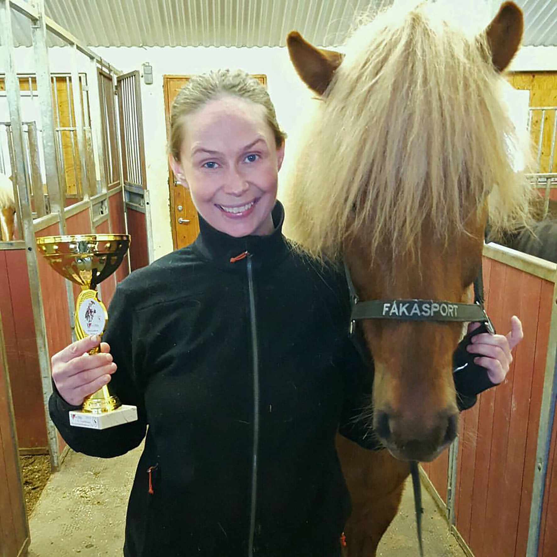Ég eignaðist minn fyrsta hest um fermingu, hann var keyptur þriggja vetra og átti ég hann þar til hann var felldur í hárri elli. Í dag á ég þrjú hross en ég vildi að ég hefði meiri tíma til að stunda hestamennskuna en oft víkur hún fyrir löngum vinnudegi.“