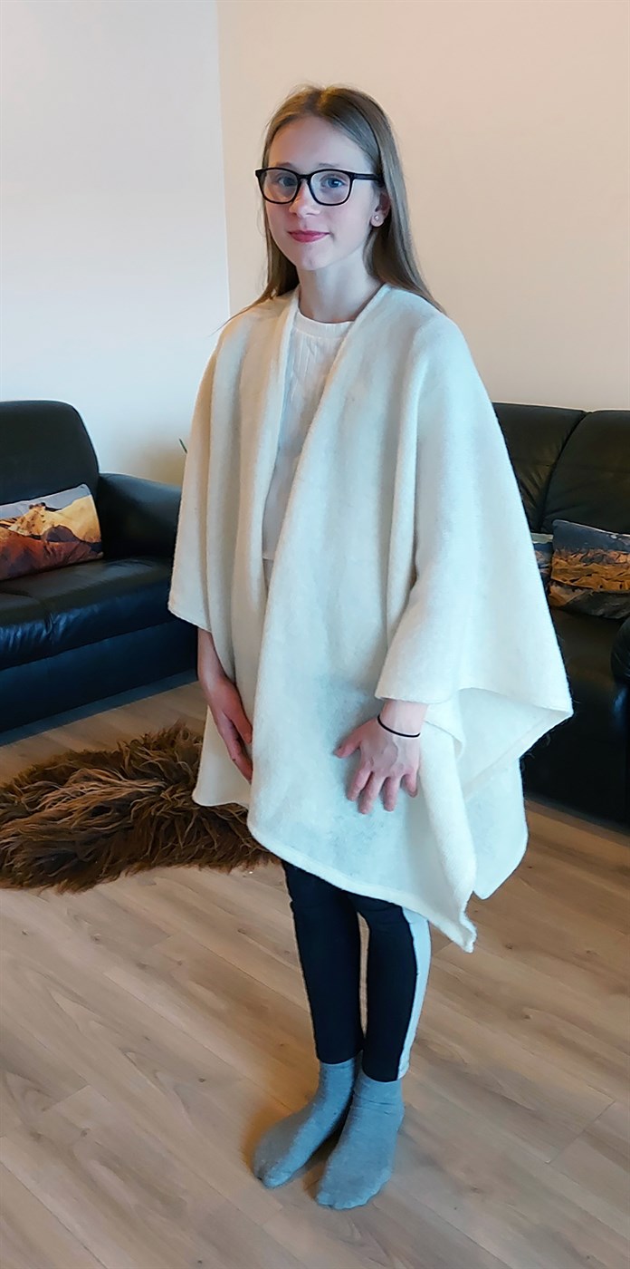 „Hann sagði mér frá nýju lambsullarbandi sem Varma í samstarfi við Ístex er búið að þróa. Ístex útbýr ullarband úr íslenskri lambsull og prjónar Varma svo lambsullarvoð úr lambsullarbandi. Ullarvoðin er svo ýfð sem gerir hana enn mýkri. Ég kaupi svo lambsullarvoð af Varma og sauma ullarvörur úr voðinni. Fyrst og fremst er ég að sauma ullarnærföt og ullarkraga en hef einnig aðeins verið að prófa mig áfram með ullarpils og ullarslár. Ullarnærfötin eru frábær innan undir svokallaða skel, vera í þeim næst sér og skel utan yfir en þá verður manni einfaldlega ekki kalt í slarki við smalamennsku eða aðra iðju upp til fjalla að hausti eða vetri,“ segir Guðlaug og bætir við að björgunarsveitarfólk, sem er að sérþjálfa leitarhunda, hefur aðeins verið að prófa ullarnærfötin og líkað vel, t.d. við hundaþjálfun uppi á jöklum. Einnig eru ullarnærfötin mjög góð fyrir göngufólk.