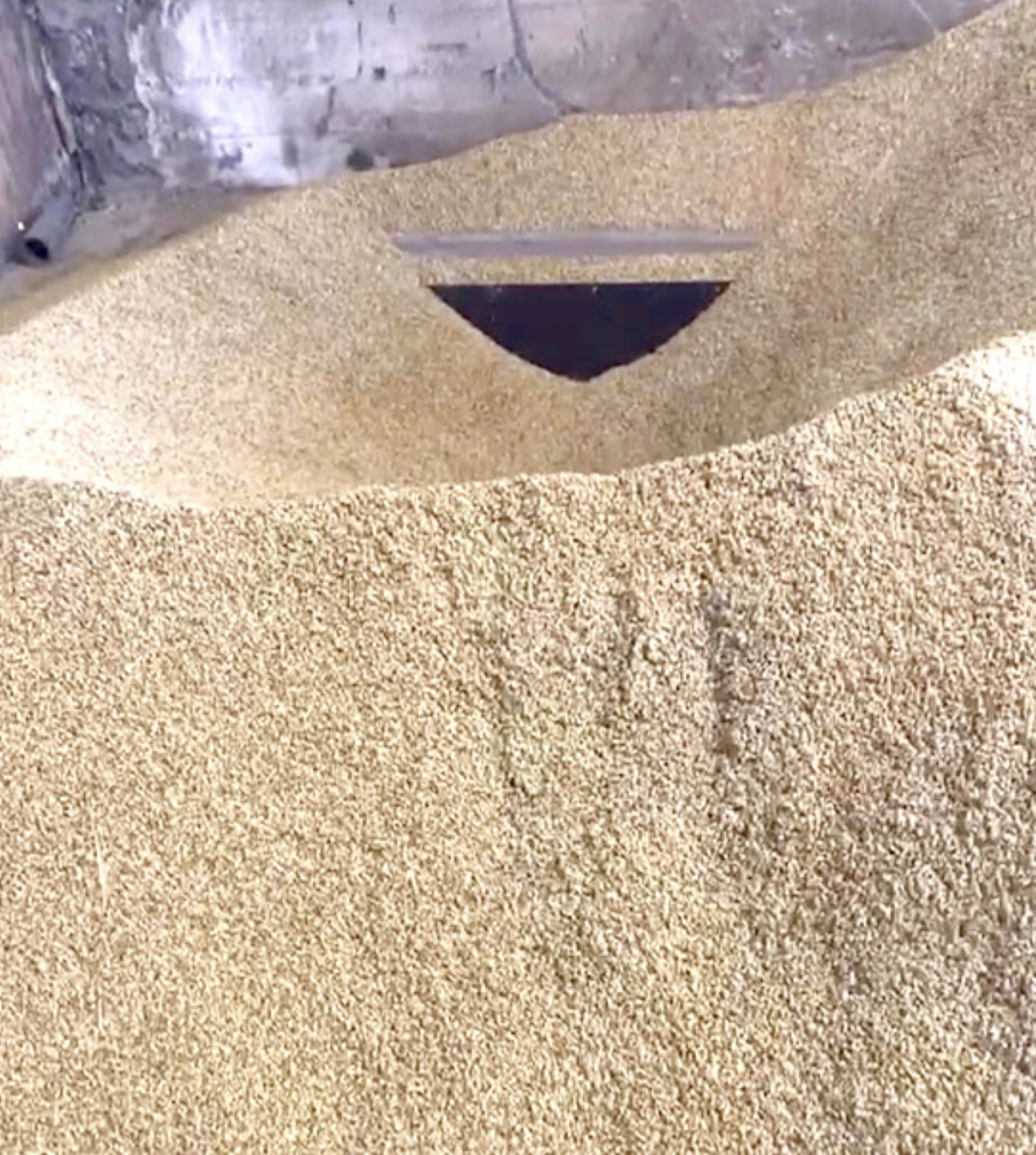 Þau hirtu hálminn þurran, rúlluðu honum með hálmstillingu, því þá er það lausara í sér, og þurrkuðu svo rúllurnar í kornþurrkunaraðstöðu sinni á Hjalteyri. „Þar eru ristar í gólfinu sem þjóna sem forþurrkun. Við röðuðum rúllunum á ristarnar og þær þornuðu á ótrúlega skömmum tíma. Með því móti er fljótlegt að mala hálminn,“ segir Jón Elvar.