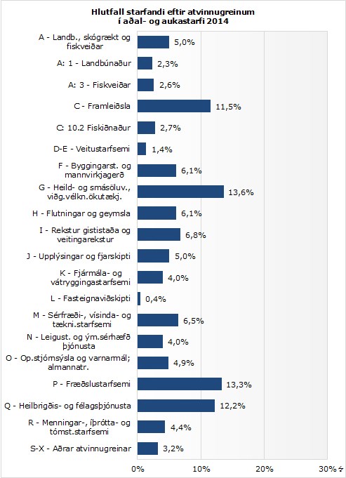 2,3% starfa í landbúnaði og 2,6% við fiskveiða