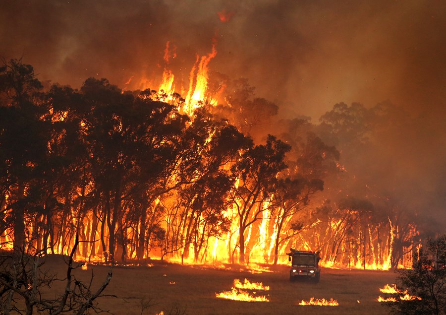 Andfætlingar okkar í Ástralíu hafa undanfarna mánuði barist við gríðarlega runna-, gresju- og skógarelda vegna mikilla þurrka. Reiknuð losun CO2 vegna eldanna eru 250 milljón tonn sem jafngildir um helmingi af árlegri losun álfunnar.