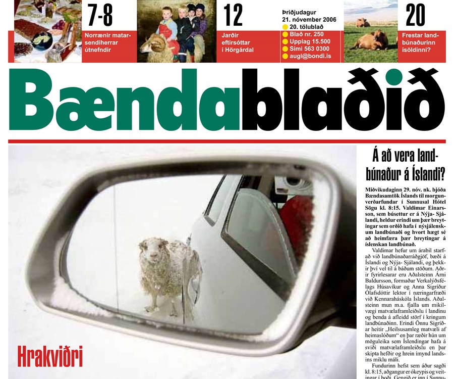 Fyrir tíu árum, þann 21. nóvember árið 2006, var á forsíðu sagt frá morgunverðarfundi sem var haldinn í Sunnusal Hótel Sögu með yfirskriftinni Á að vera landbúnaður á Íslandi: