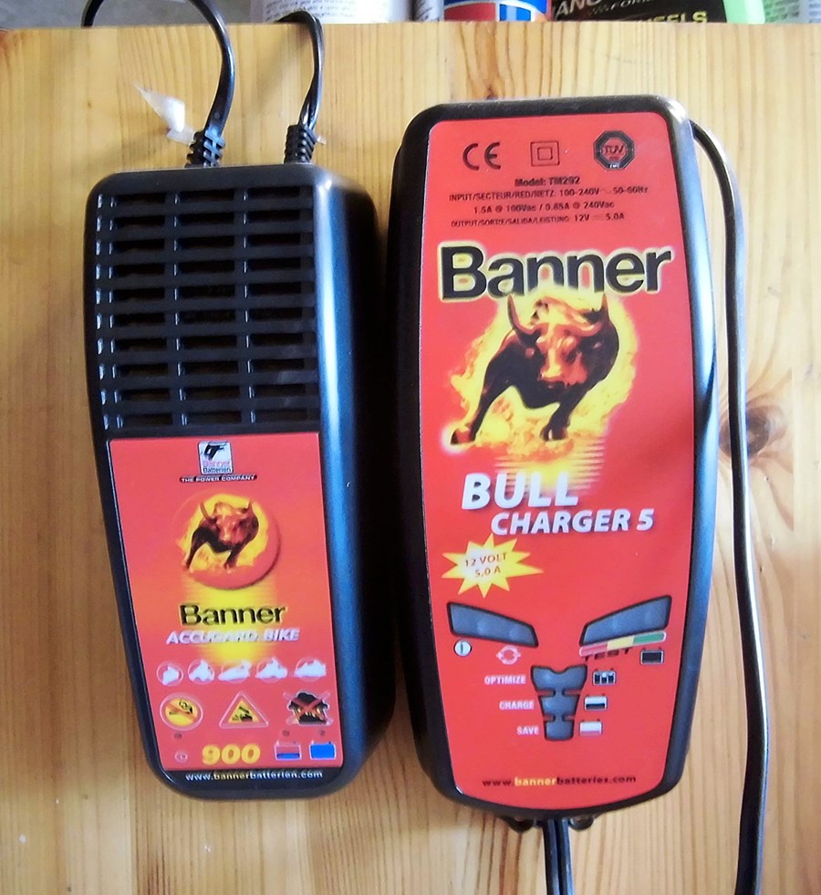 Rafgeymavaktarar. Sá minni fyrir litla rafgeyma, en sá stærri hentar flestum stærri rafgeymum.