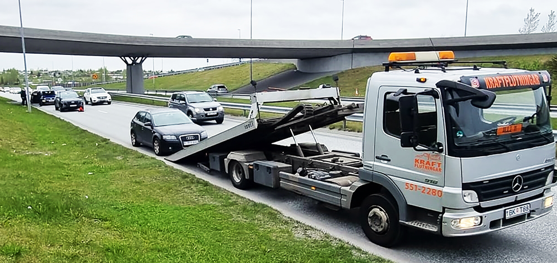 Fyrir skemmstu var ég beðinn um aðstoð á þungri umferðargötu, bíllinn á miðri akrein á mjög vondum stað. Bilunarlýsing var um klukkutíma vinna og öll aðkoma til að vinna við bílinn var umferðarmegin. Ég sagði nei, það verður að flytja bílinn, og benti á flutningsaðila sem sótti bílinn. Á meðan hann var að setja bílinn bilaða á sinn bíl með allt blikkandi gult og með varúðarþríhyrning um 50 metrum fyrir aftan, varð þriggja bíla árekstur fyrir aftan bílinn bilaða og einn farþegi fluttur í burtu með sjúkrabíl. Þarna hefði getað farið verr, en í verstu svona tilfellum hef ég leitað til lögreglu með blá blikkandi ljós fyrir aftan mig meðan ég vinn verk á hættulegum stöðum. Að fá lögreglu til að vera þarna fyrir aftan í um klukkutíma var að mínu mati of langur tími, en það er hugsanlega til lausn sem Samgöngustofa gæti veitt.