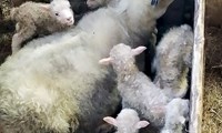 Bændurnir Hafdís Sturlaugsdóttir og Matthías Sævar Lýðsson í Húsavík í Steingrímsfirði á Ströndum upplifðu einstakan atburð þann 5. maí síðastliðinn þegar ærin þeirra, Sarabía, bar sex lömbum og öllum lifandi. Afar sjaldgæft er að slíkt gerist hér á landi.