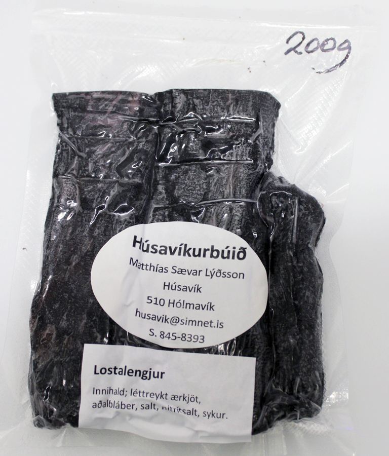 Aðallinn okkar í framleiðslunni er þó „Lostalengjur“. Það er aðalbláberjamarínerað ærkjöt eða ærvöðvar sem eru lítils háttar reyktir og síðan þurrkaðir. Þetta er eins konar þurrskinka. Þetta erum við búin að vera með í ein átta ár og vorum í þróunarverkefni með þetta með MATÍS. Við höfum svo þróað þetta frekar og betrumbætt framleiðsluna. Núna erum við komin á gott ról með þessa framleiðslu og varan selst út úr höndunum á okkur jafn óðum og við framleiðum. Við höfum bara ekki nægan tíma afgangs til að geta framleitt nógu mikið.“