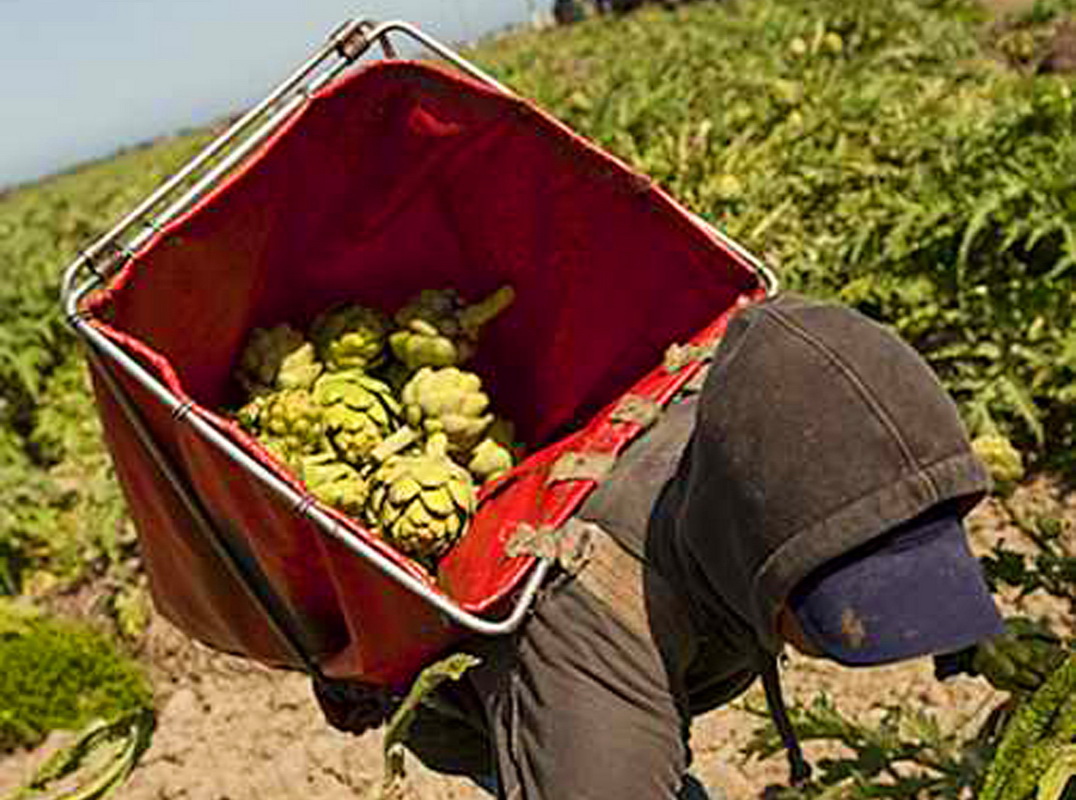 Uppskera á þistilhjörtum er nánast öll með höndum.