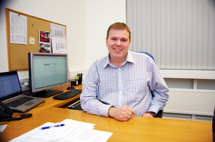 Jón Haraldsson framleiðslustjóri í vélasal Ístex í Mosfellsbæ.