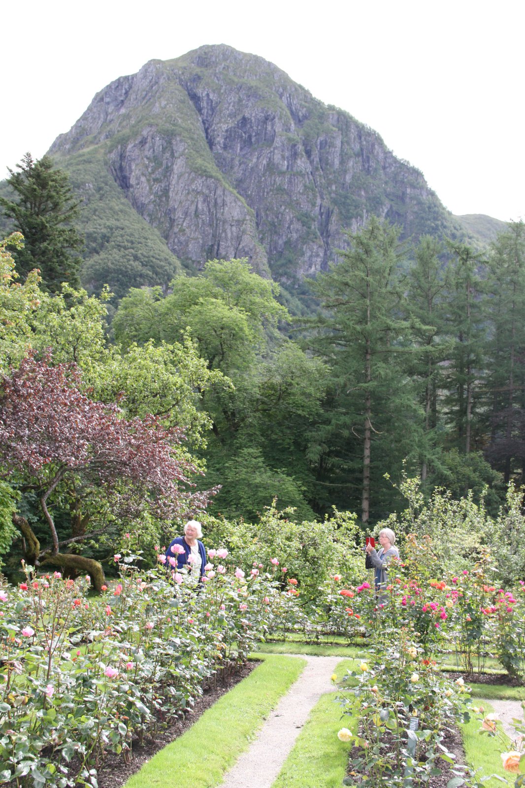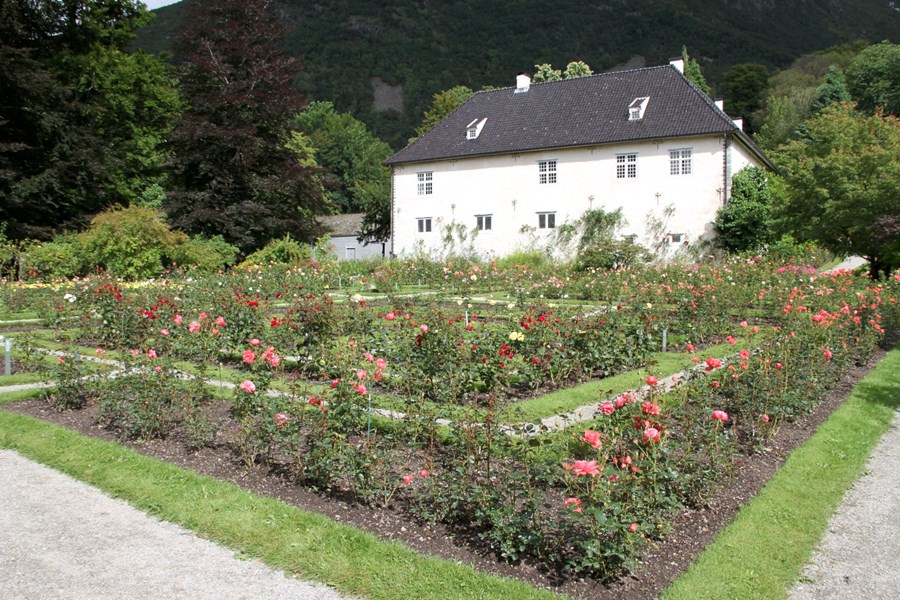 Rósir í öllum regnbogans litum prýða garðinn við barónshöllina.