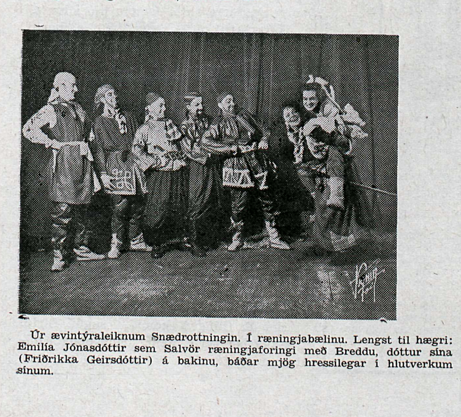 „Leiktjöld Lárusar Ingólfssonar eru góð, og sömuleiðis búningar þeir, sem Nína Tryggvadóttir hefir gert. Má í því sambandi sérstaklega nefna krákubúningana, en auk þess hvítabirnina, snædrottninguna og fleira.“